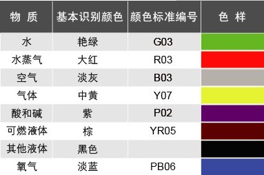 用以識(shí)別工業(yè)管道內(nèi)物質(zhì)種類(lèi)的顏色。