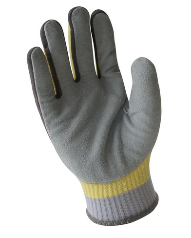● 掌部貼本色牛二層皮,用芳綸雙縫線縫織,保持手套彈性,同時提升手套防滑耐磨性能