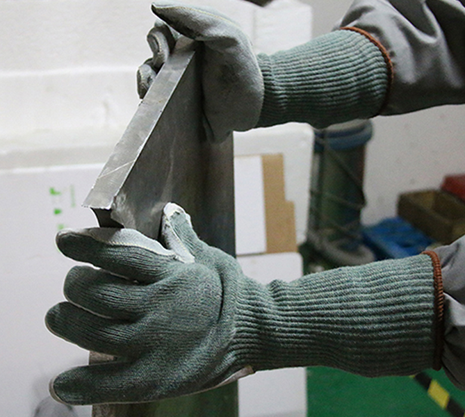 產(chǎn)品介紹:本產(chǎn)品采用特種纖維編織而成,具有良好的防切割性和透氣舒適性;手掌縫皮設計,增強了防切割性能、耐磨性能,手腕加長設計,更有效的保護手腕。