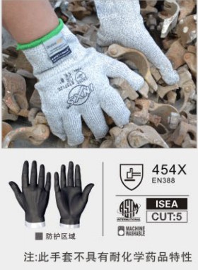 - 手套由新型的防切割材料BLADE X5 纖維與萊卡混合針織而成