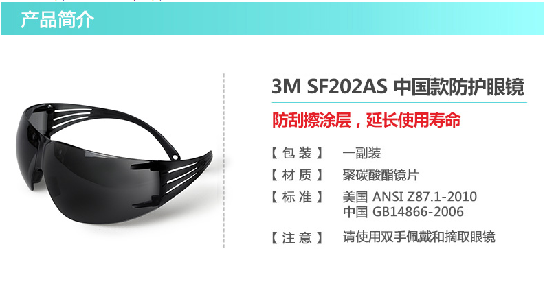 產(chǎn)品名稱:3M SF202AS灰色防刮擦防護眼鏡