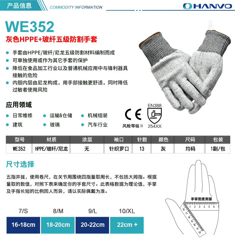 產(chǎn)品名稱:恒輝WE352 防切割手套(五級(jí)防護(hù))