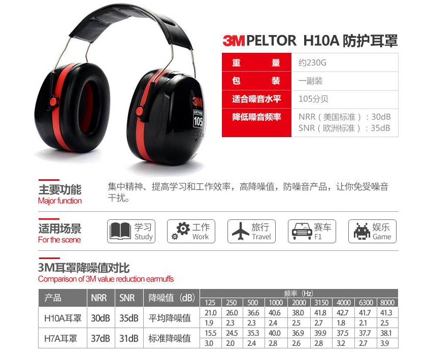 產(chǎn)品名稱:3M PELTOR H10A 頭帶式耳罩(SNR35dB)