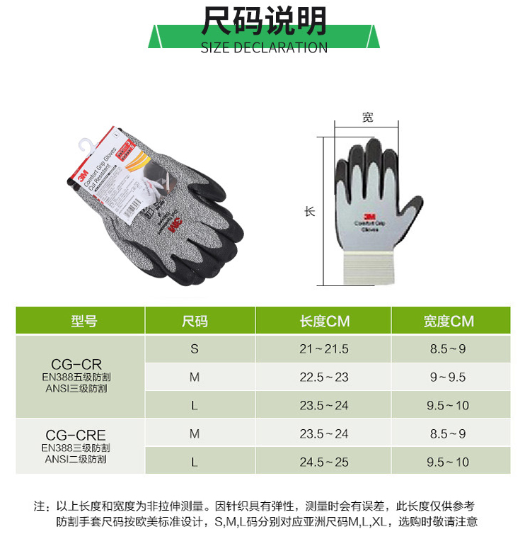 產(chǎn)品名稱:3M 舒適型防滑耐磨手套 防割型 L3 M 手套