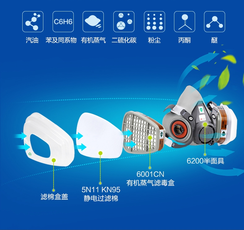 ●3M 6200+6005CN+5N11+501防甲醛7件套;