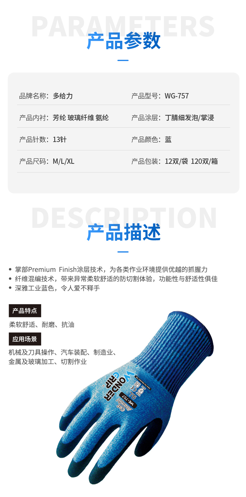 Wonder Grip? 多給力柔軟型防切割作業(yè)手套 WG-757 柔軟舒適 防割耐磨