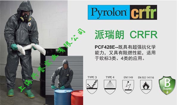 產品名稱:雷克蘭Pyrolon派瑞朗CRFR防化服/具有強抗化學性能,又具有阻燃性能,適用于歐標3.4類的應用